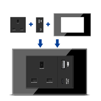 DELEFU英語マルチ3穴標準ソケットスイッチUSB急速充電タイプCキーDIY4 * 2 4*4パネル機能モジュールブラック