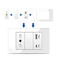 DELEFUイタリアEU標準ソケットスイッチUSB急速充電タイプCキーDIY4 * 2 4*4パネル機能モジュールホワイト