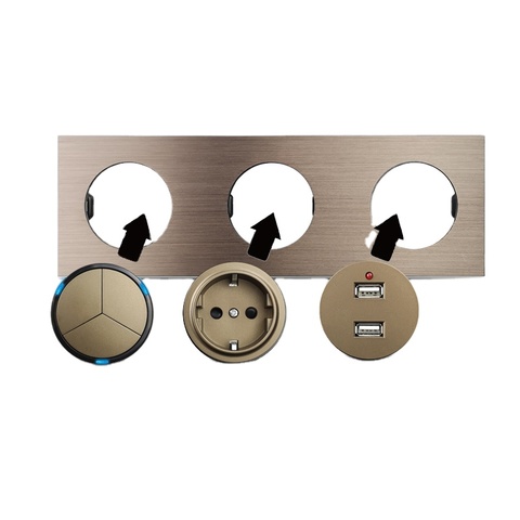 Prise murale française européenne dorée Chargeur USB adaptateur de voyage universel Modules audio Panneau en aluminium brossé marron DIY
