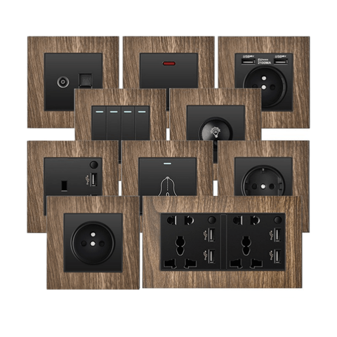 Interrupteur de lampe murale rétro Eu, point d'alimentation universel avec usb, prise murale USB couleur grain de bois fournitures électriques