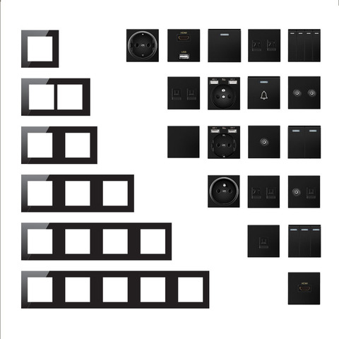 Combinaison de prises d'interrupteur mural à cadre multiple noir, prise électrique européenne française, module RJ45, interrupteur d'éclairage personnalisé DIY