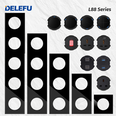 DELEF LED bouton rond retour poussoir 1234Gang, panneau en verre trempé noir interrupteur français ue, Module de bricolage rétro-éclairage bleu à grande ouverture
