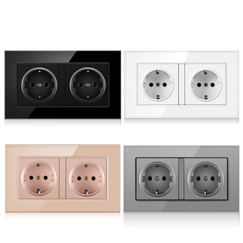 Prise murale électrique EU 16A prise allemande panneau en verre trempé 146mm x 86mm prise noire Double EU
