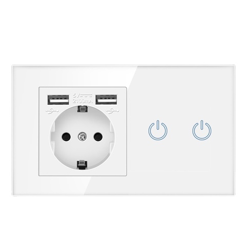 Interrupteur à capteur tactile avec prise avec panneau en verre cristal Usb 146x220V 16a prise murale avec interrupteur d'éclairage