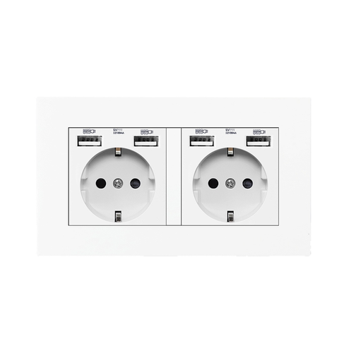 Prise électrique double paroi européenne blanche modèle 146, prise de charge USB allemande à 2 broches, prise d'alimentation 16A
